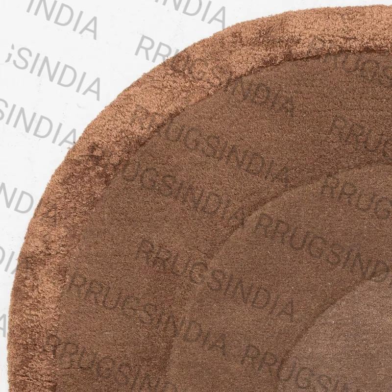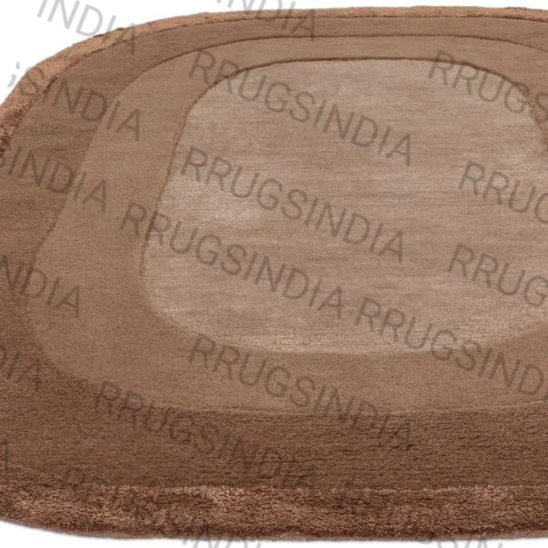 Hand Tufted Brown Oval Area Rug: Soft Modern Layered Border Carpet