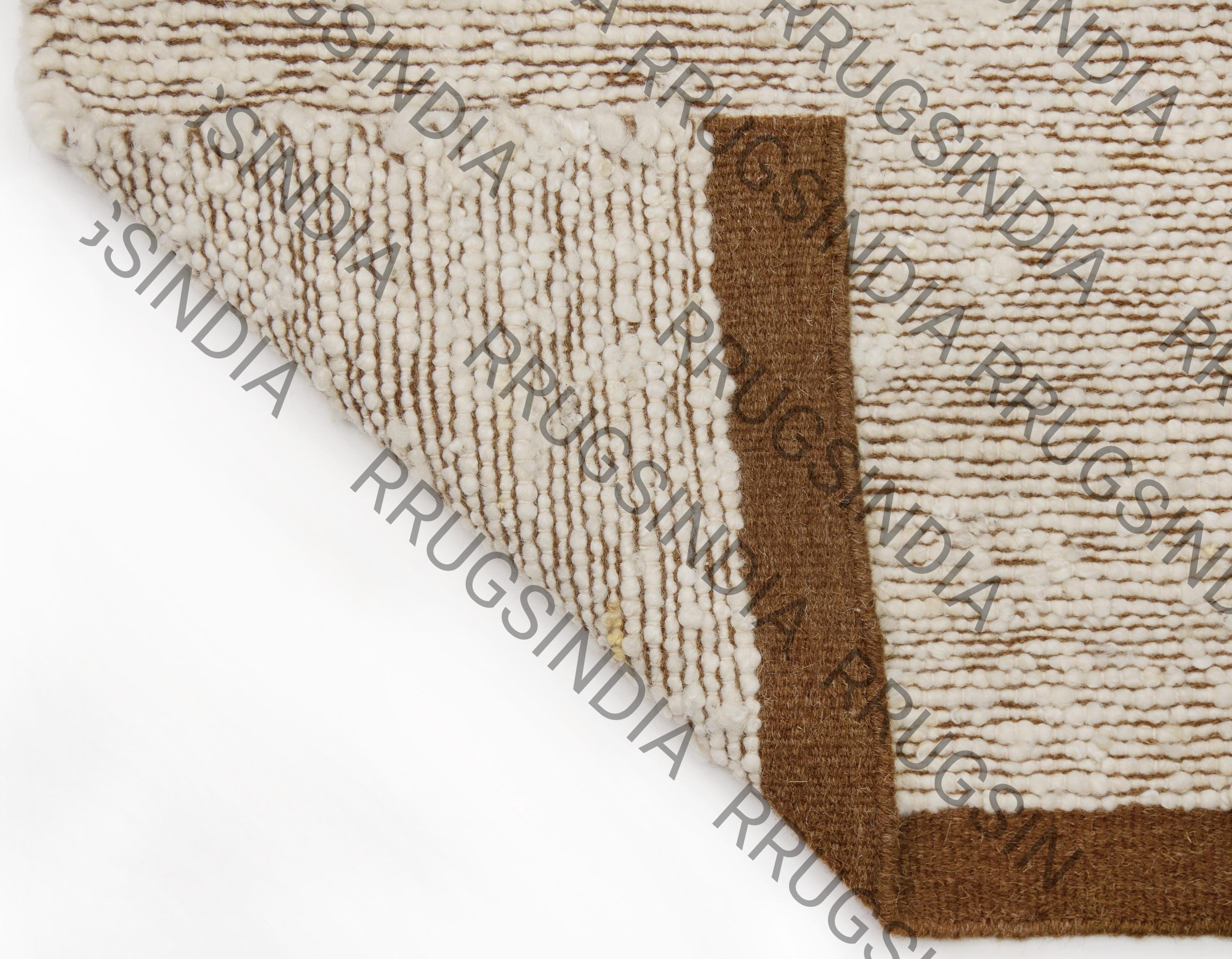 Bring home the beauty of authentic craftsmanship with this handwoven rug, made from natural wool for a cozy and inviting texture. The blend of rich brown borders and soft cream tones creates a modern yet timeless look, perfect for farmhouse, bohemian, or contemporary spaces.