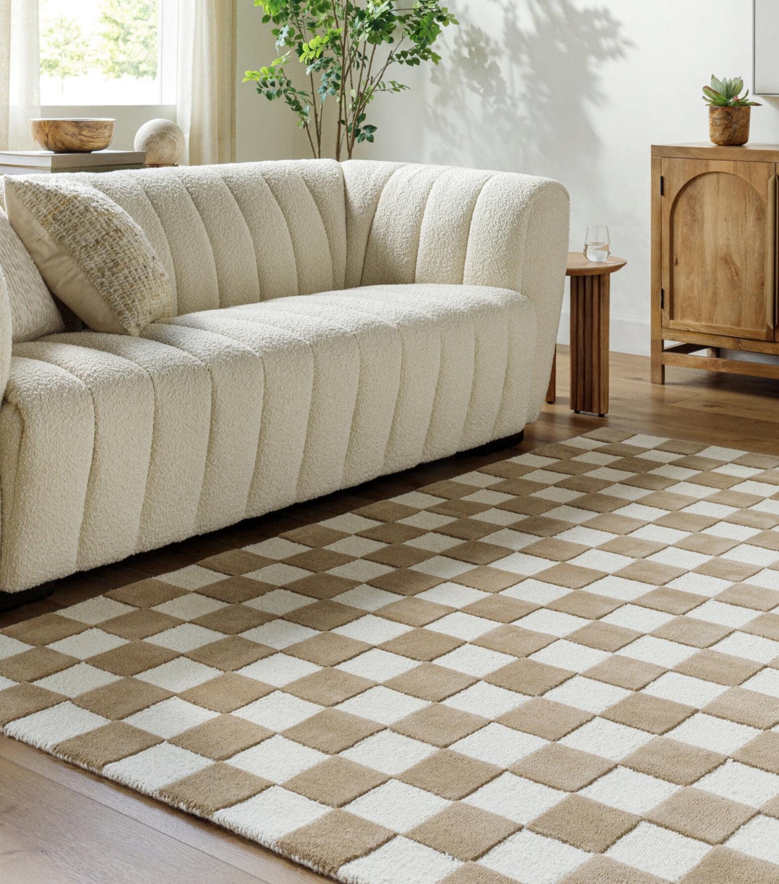 Hand-Tufted Wool Checkered Rug – Modern Geometric Carpet