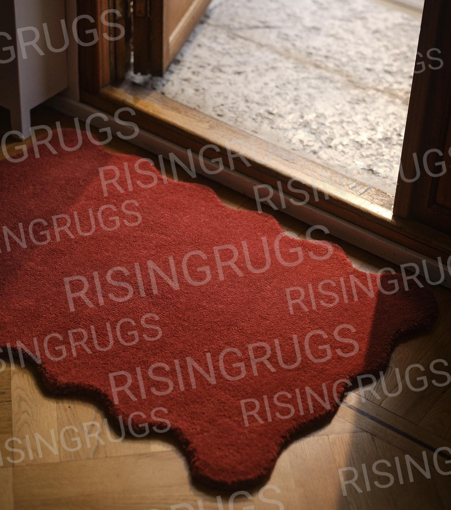 Add warmth and sophistication to your home with our Hand-Tufted Red Wavy Rug, a stunning piece of modern art underfoot. Expertly crafted by skilled artisans, this rug features a bold wavy silhouette in rich shades of deep red and rust, creating a sense of movement, depth, and contemporary elegance.
