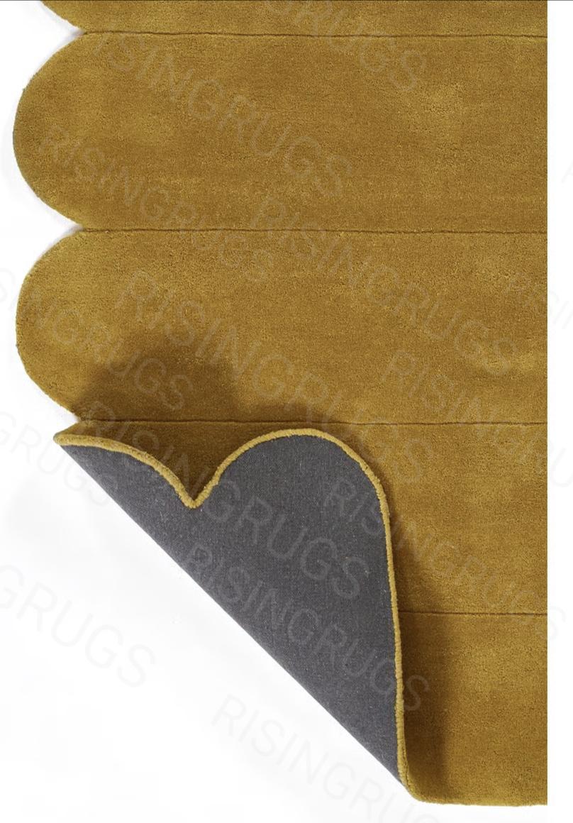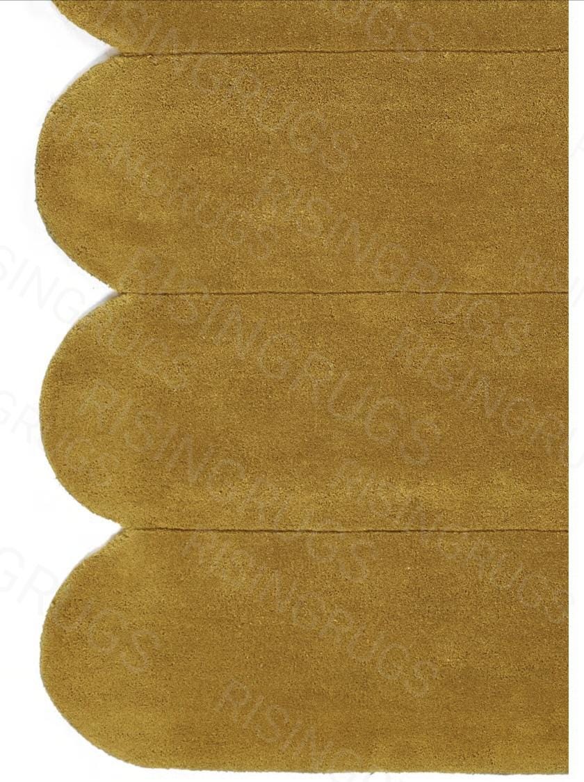 Hand-Tufted Mustard Scallop Edge Rug – Modern Geometric Wool Area Rug, Handmade Contemporary Carpet