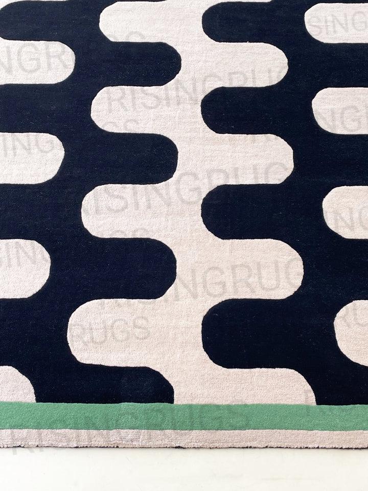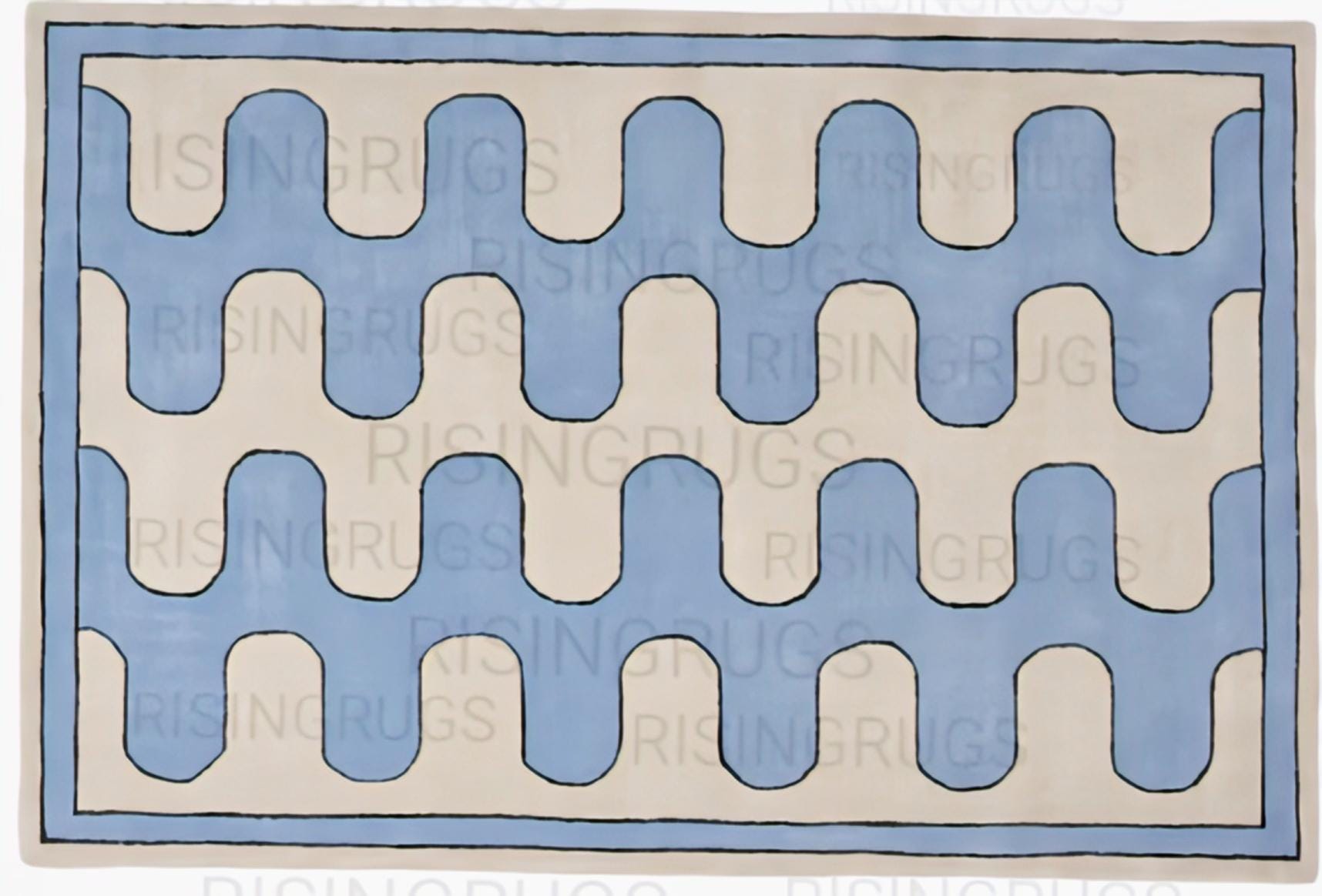Add a touch of modern artistry to your home with this stunning Hand-Tufted Wool Rug, featuring an eye-catching wavy blue and ivory pattern. Its bold yet soothing design captures the essence of contemporary minimalism — perfect for stylish American and European homes that appreciate clean lines and artistic charm.