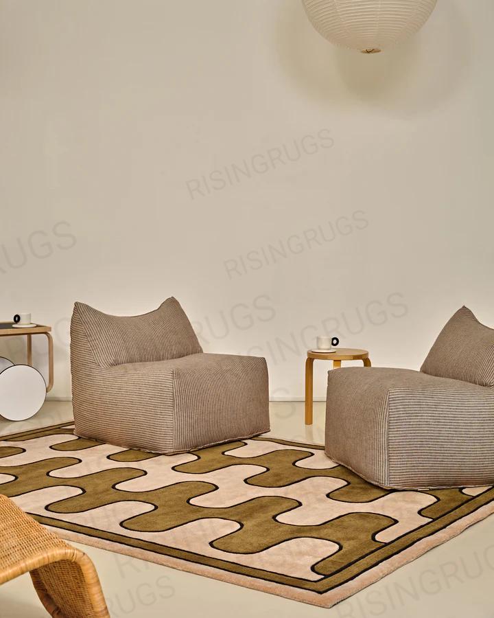 This rug brings together art, geometry, and craftsmanship. Its elegant wavy pattern gives your room a relaxed, designer feel — perfect for creating a modern aesthetic that’s both cozy and sophisticated.
