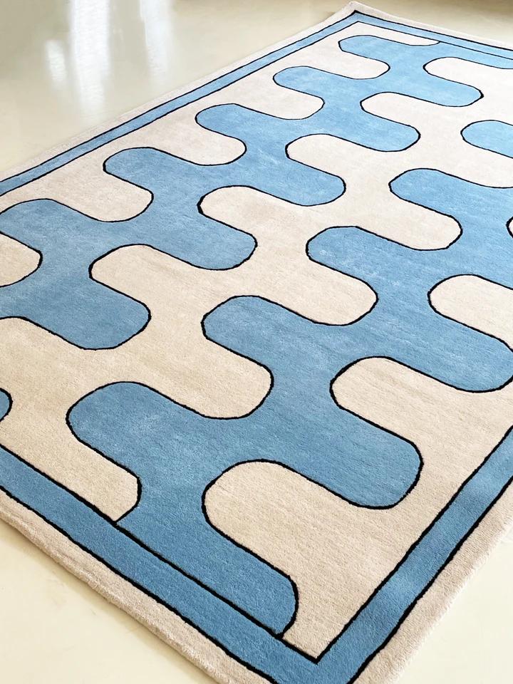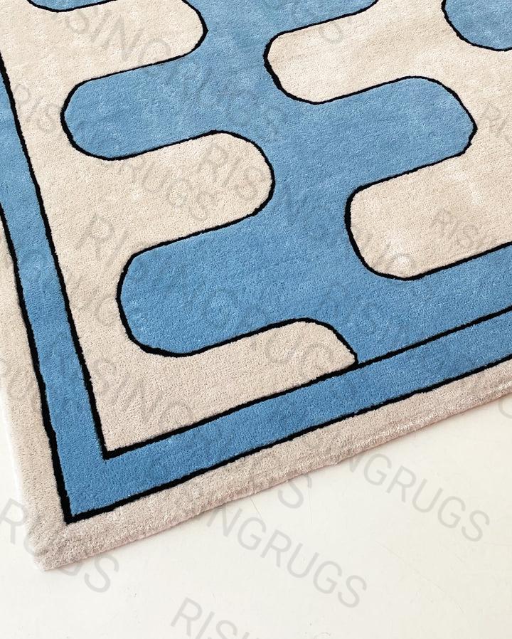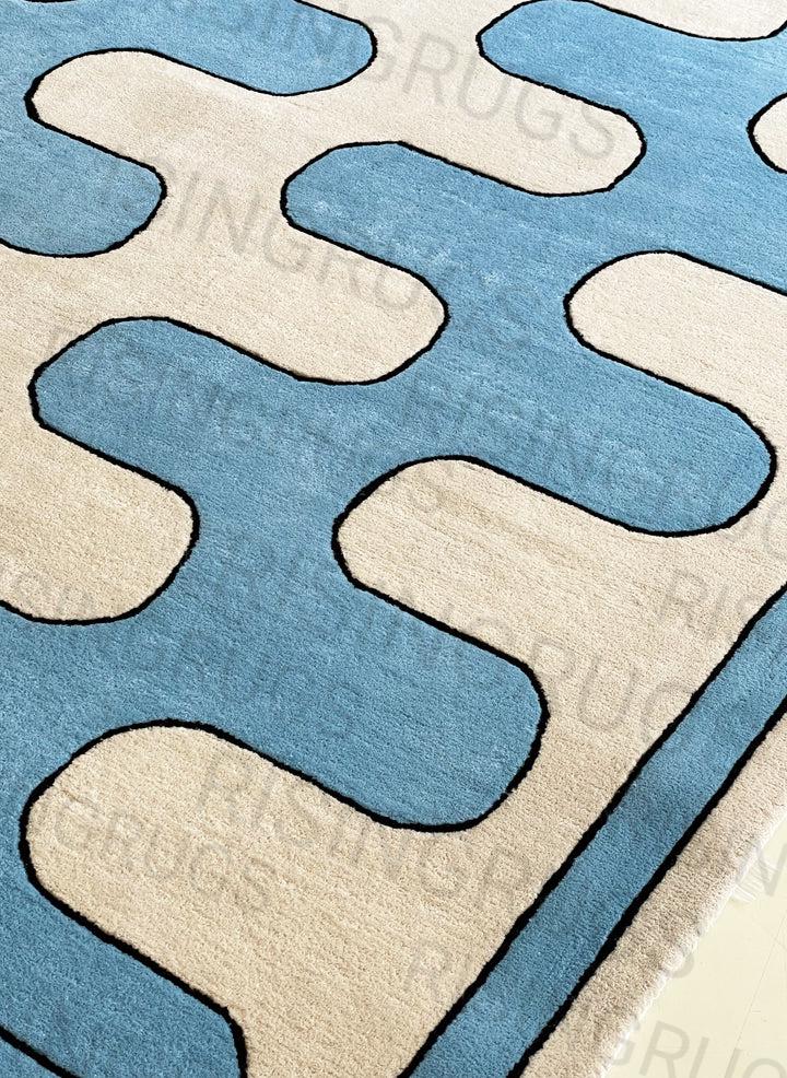 Hand-Tufted Wool Rug – Modern Blue & Ivory Wavy contemporary Design