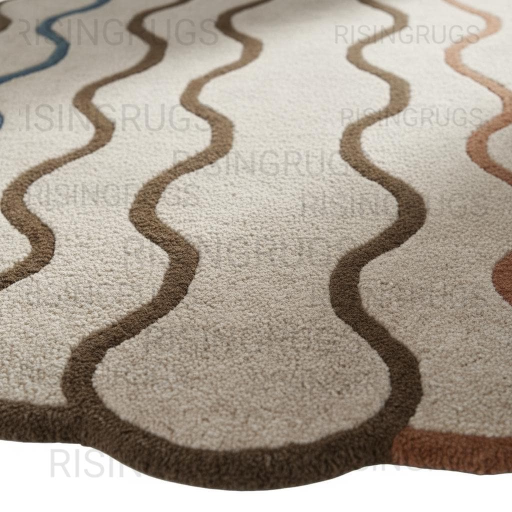 Hand-Tufted Wool Rug – Modern Wavy Border, Sculpted Edge