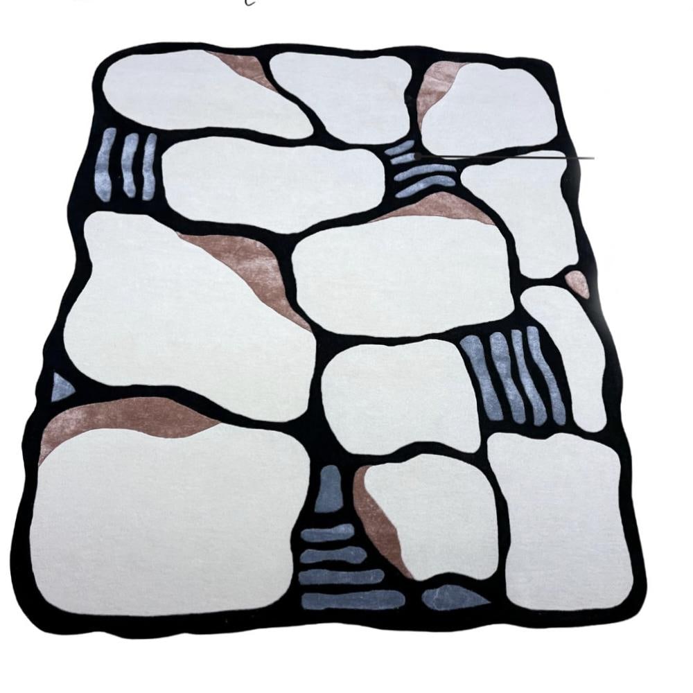 Hand-Tufted Tencel Rug – Modern Stone Pattern, Silky Soft Carpet