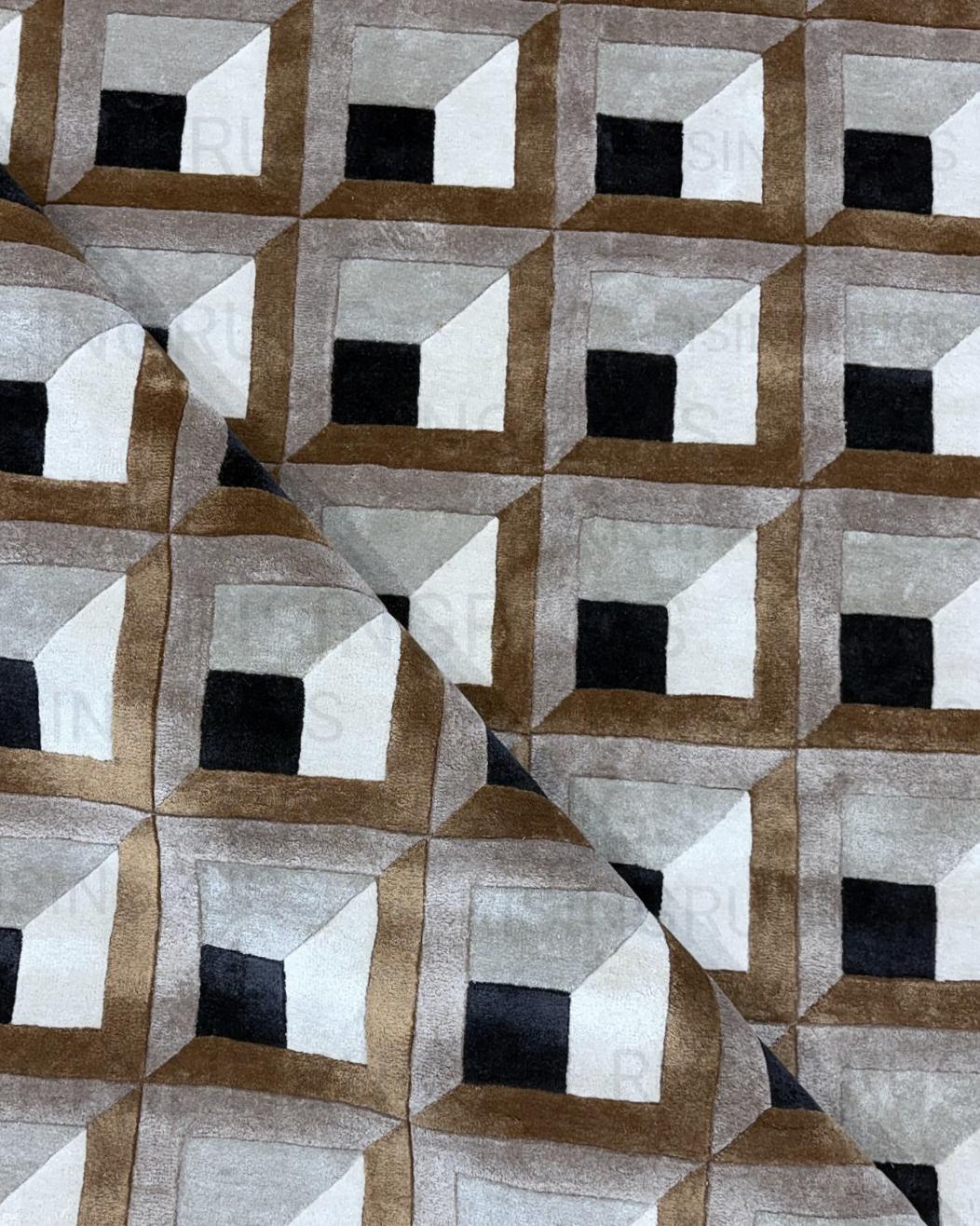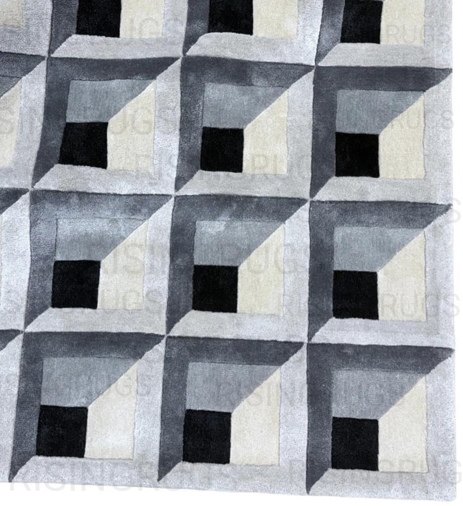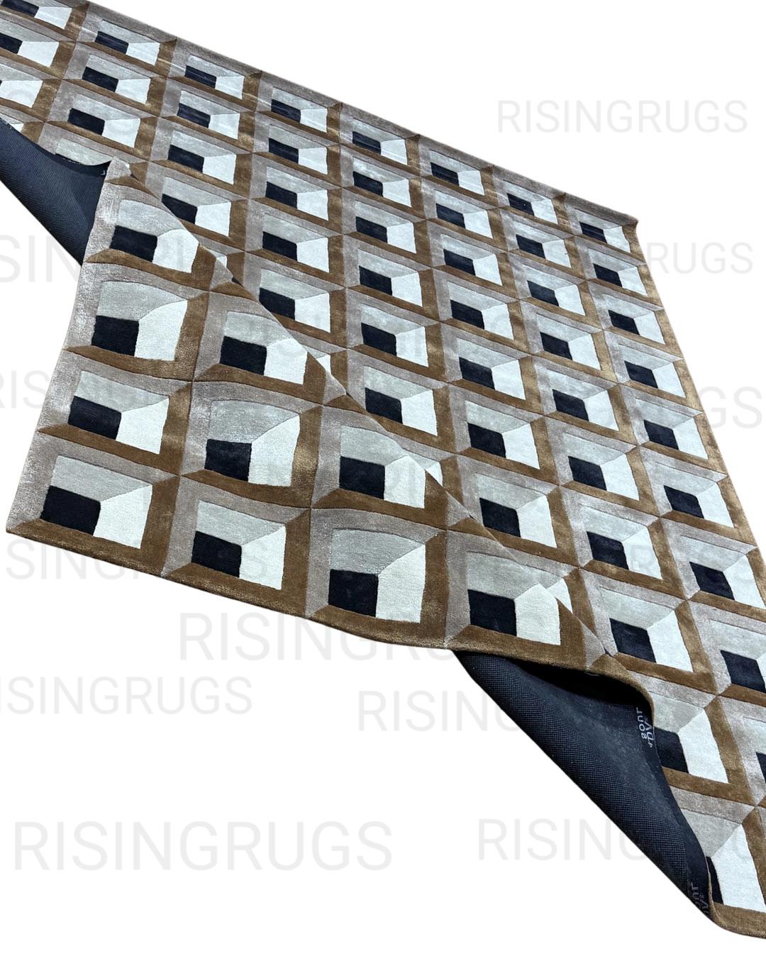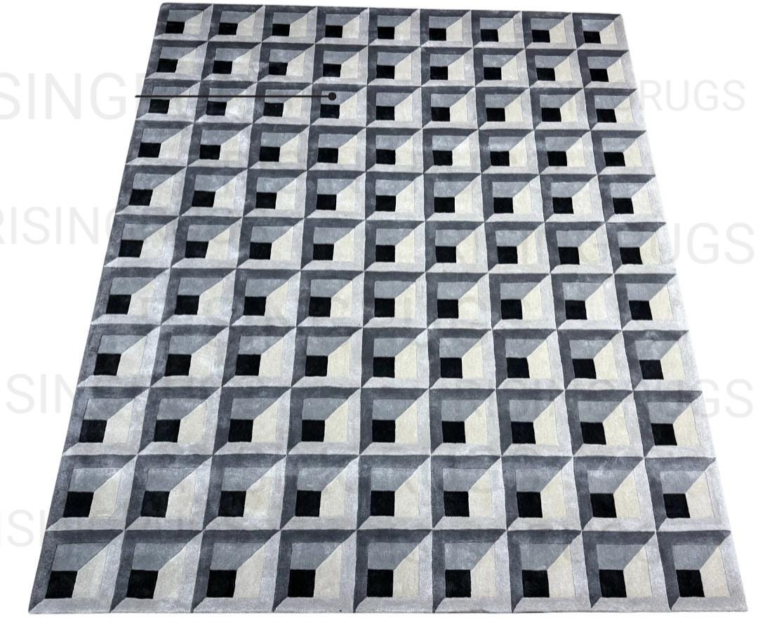 3D Geometric Tencel Rug | Hand Tufted Optical Illusion Carpet