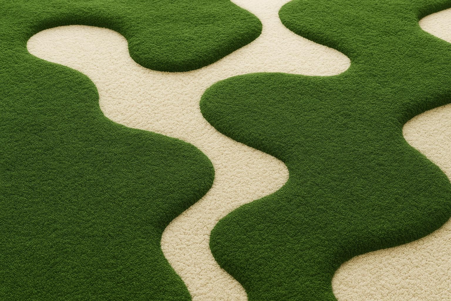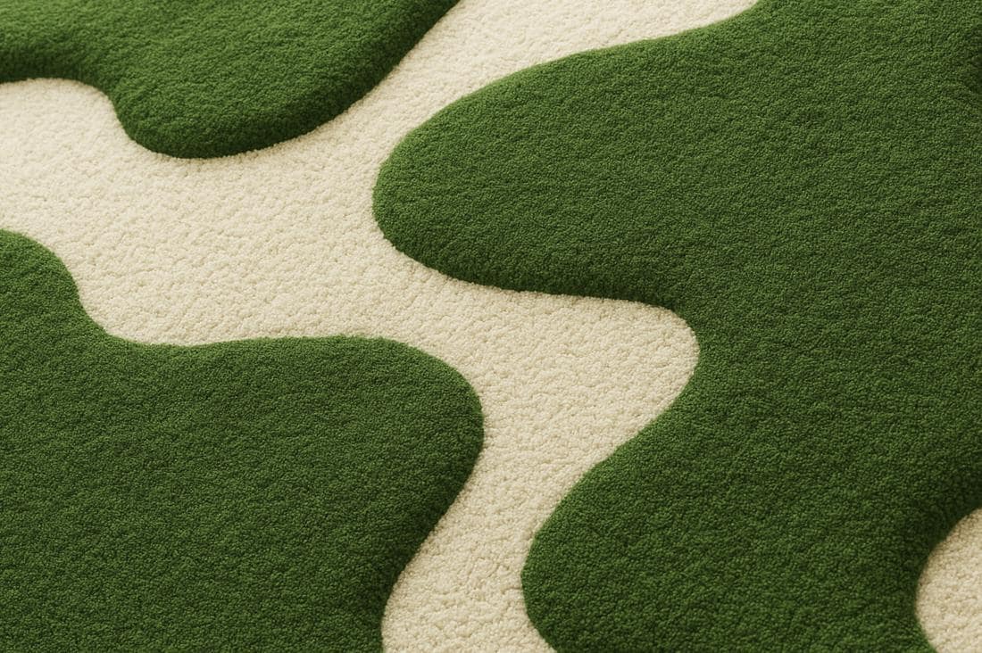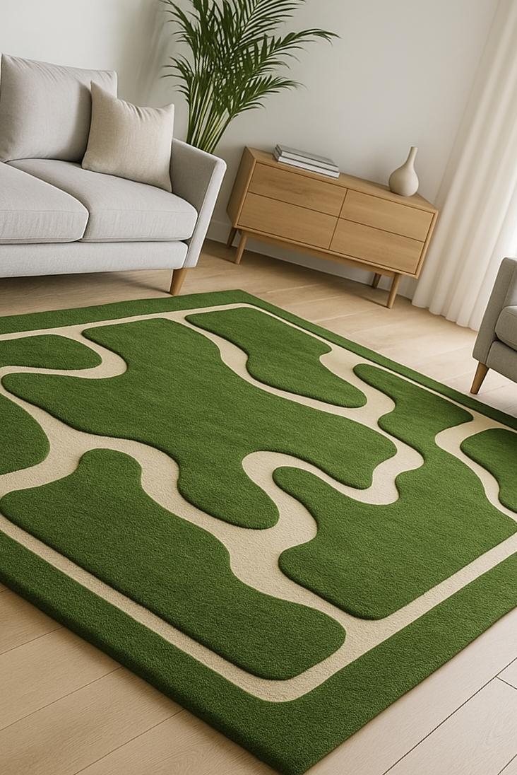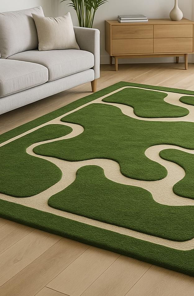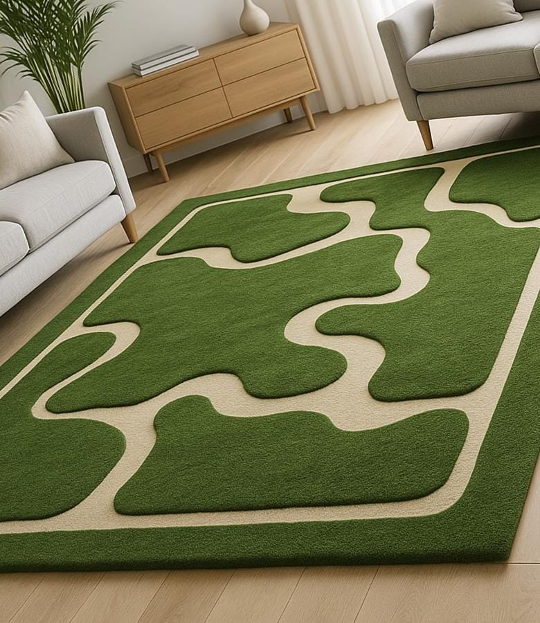 Green Abstract Wool Rug | Hand-Tufted Designer Carpet