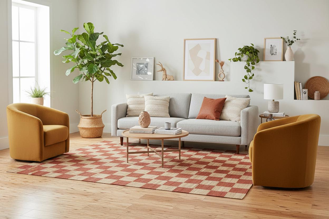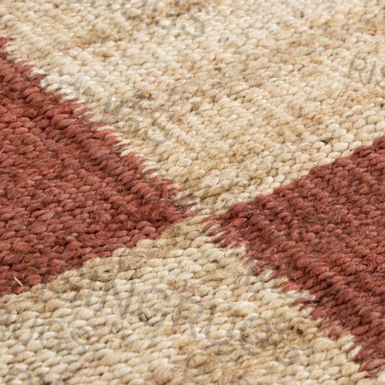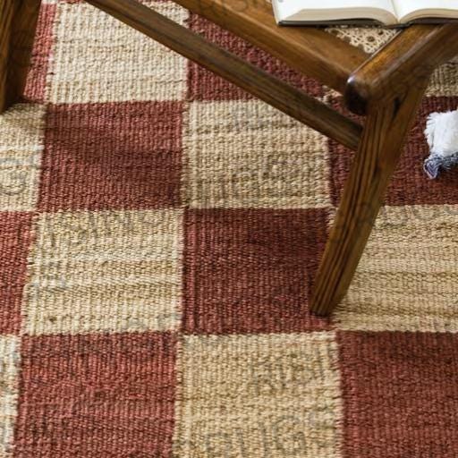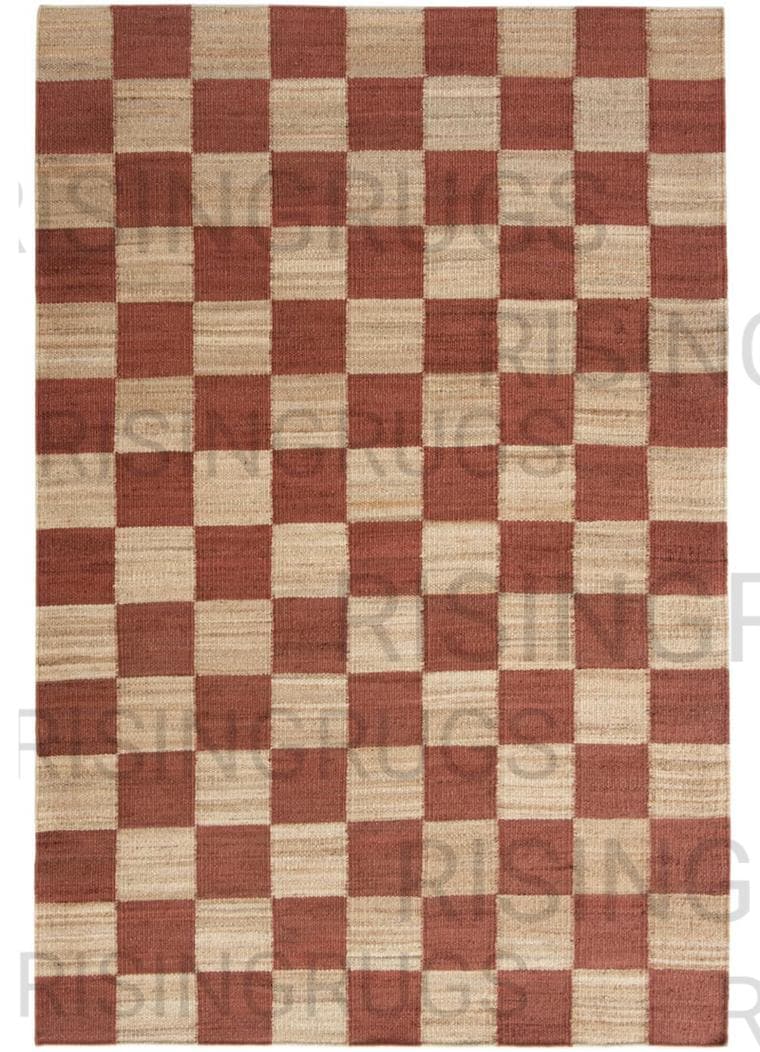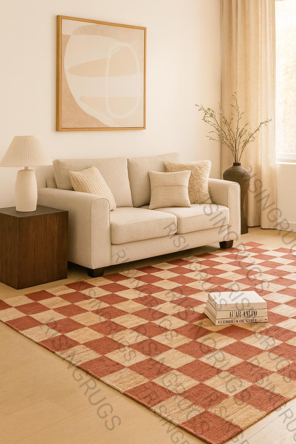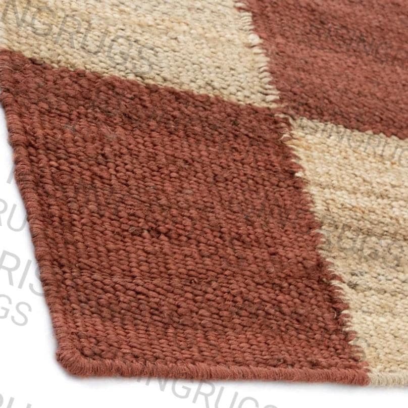 Handwoven Jute Rug – Terracotta Checkerboard Flatweave, Rustic Boho Decor